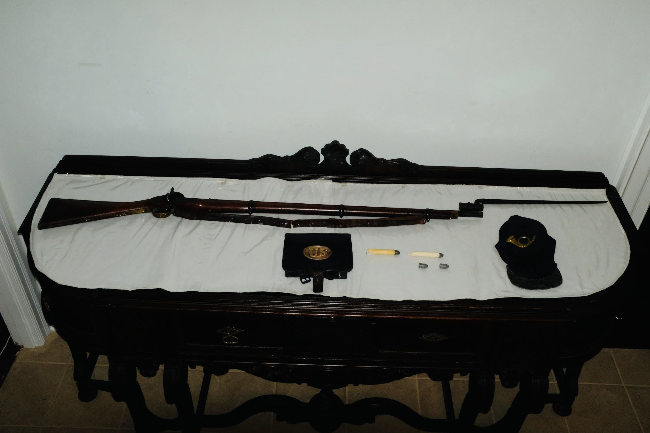 Upon enlistment, Lansing Waters had been given this Enfield rifle, which he carried with him throughout the war, and he was allowed to retain it upon his discharge. The gun is a Pattern 1853 Enfield rifle. And put simply, it is one of the most important firearms of the 19th century. It is a rifled musket (replacing the older smoothbore muskets of the time); it was produced in England and issued to British regulars and colonial troops around the globe.